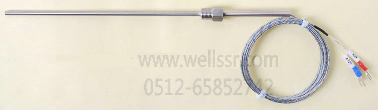 WT21系列高品質(zhì)熱電偶是由高品質(zhì)熱電偶線一頭直接焊成測(cè)溫點(diǎn)放入焊接了不銹鋼螺紋并加上彈簧的304不銹鋼保護(hù)管內(nèi)作為探桿,一頭直接延長(zhǎng)至